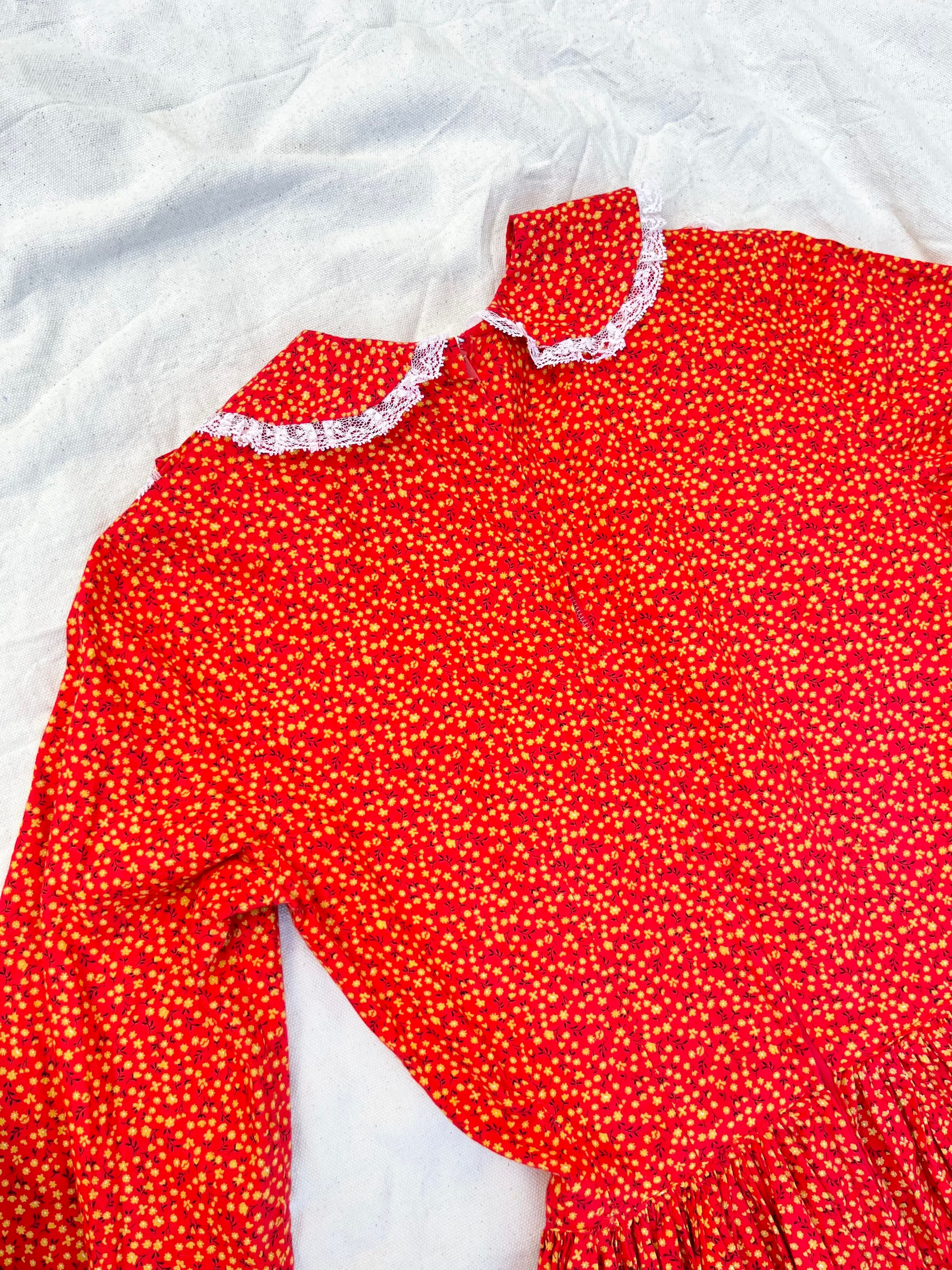 70s red flower printed long dress dress 花柄ワンピース