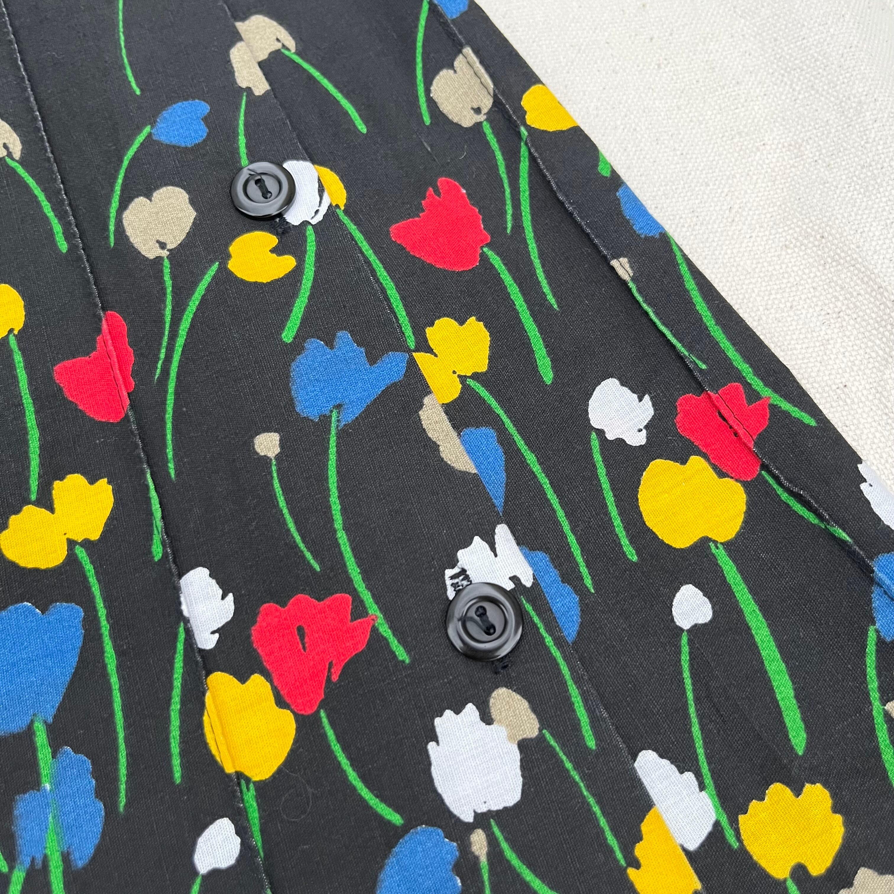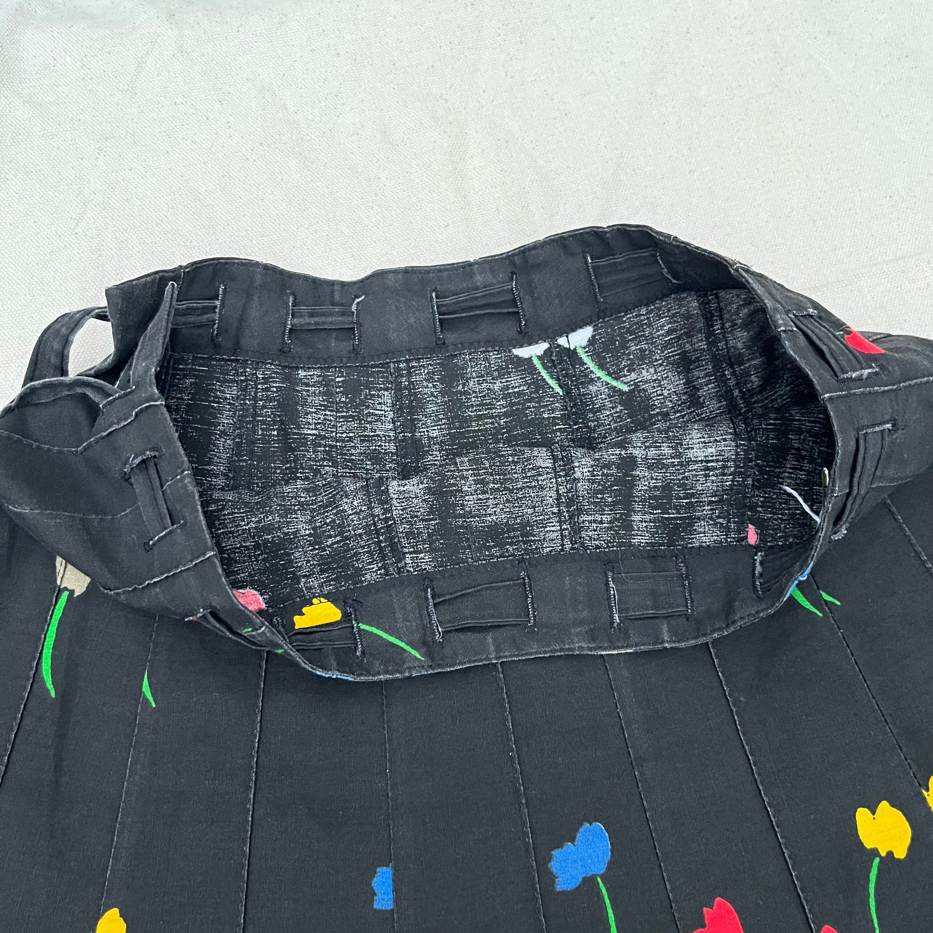 ブラック生地にカラフルなお花が映える花柄スカートです。レトロな雰囲気も可愛いですね。