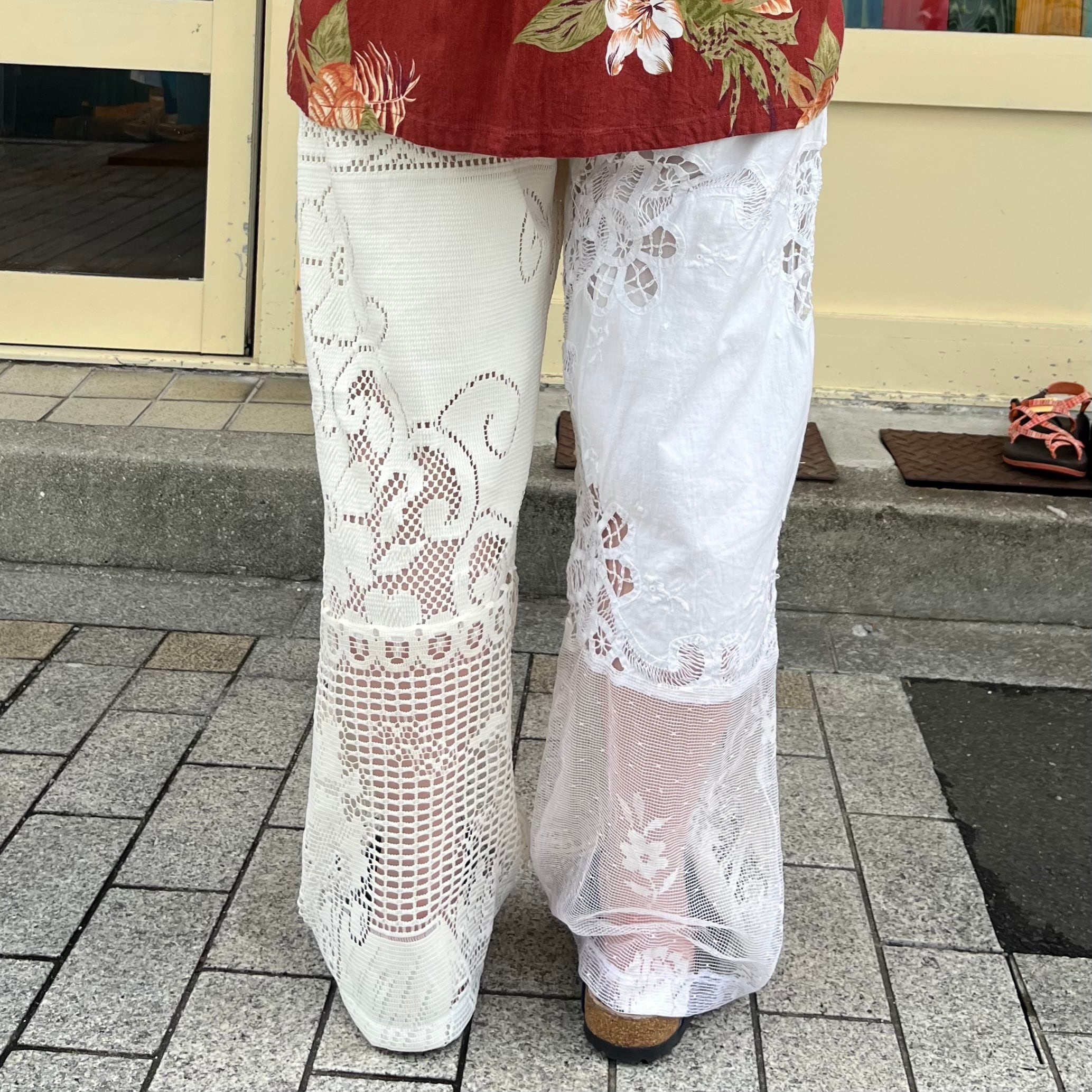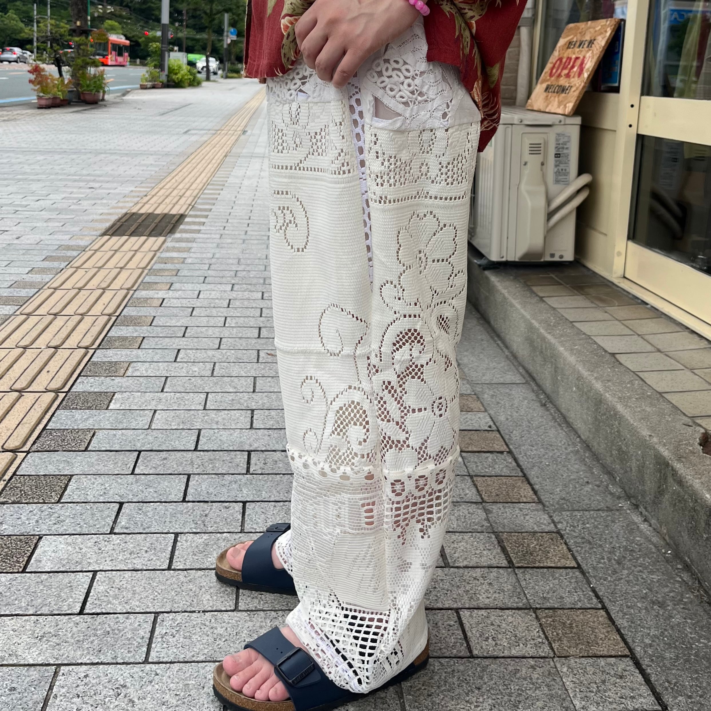 ホワイトカラーでコーディネートに取り入れやすく、Tシャツに合わせるだけで主役なレースパンツです!!