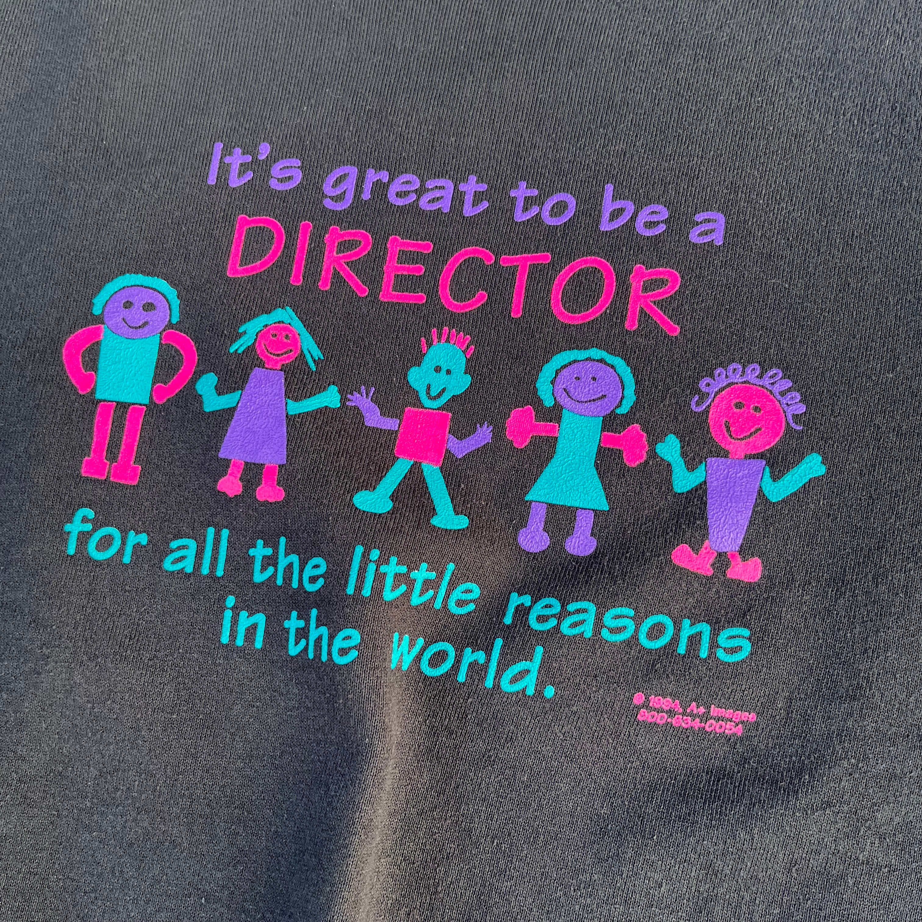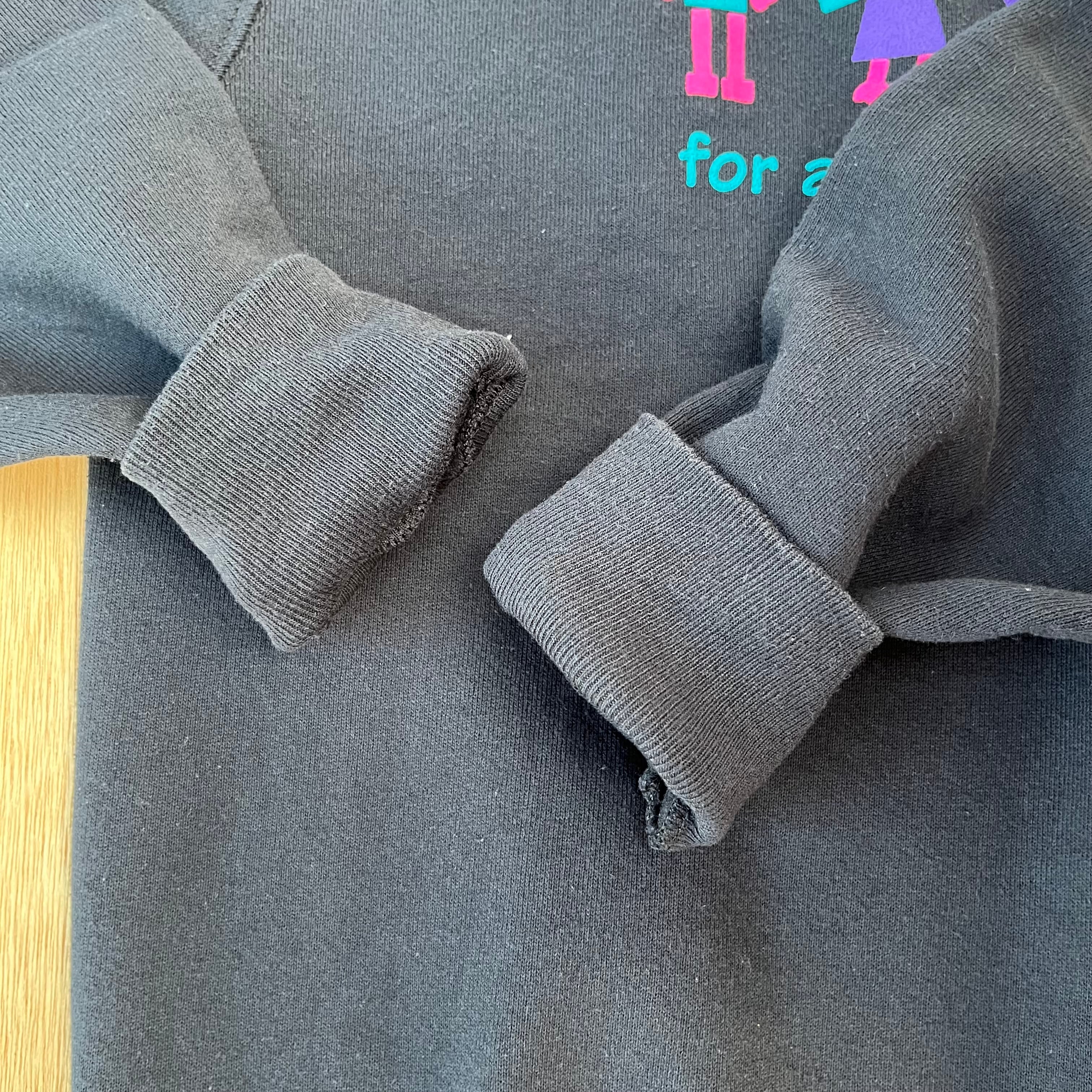 ブラックに蛍光色なプリントが目立ち、色や人のデザインが可愛いですね。保育園や幼稚園関連のプリントかと思います。