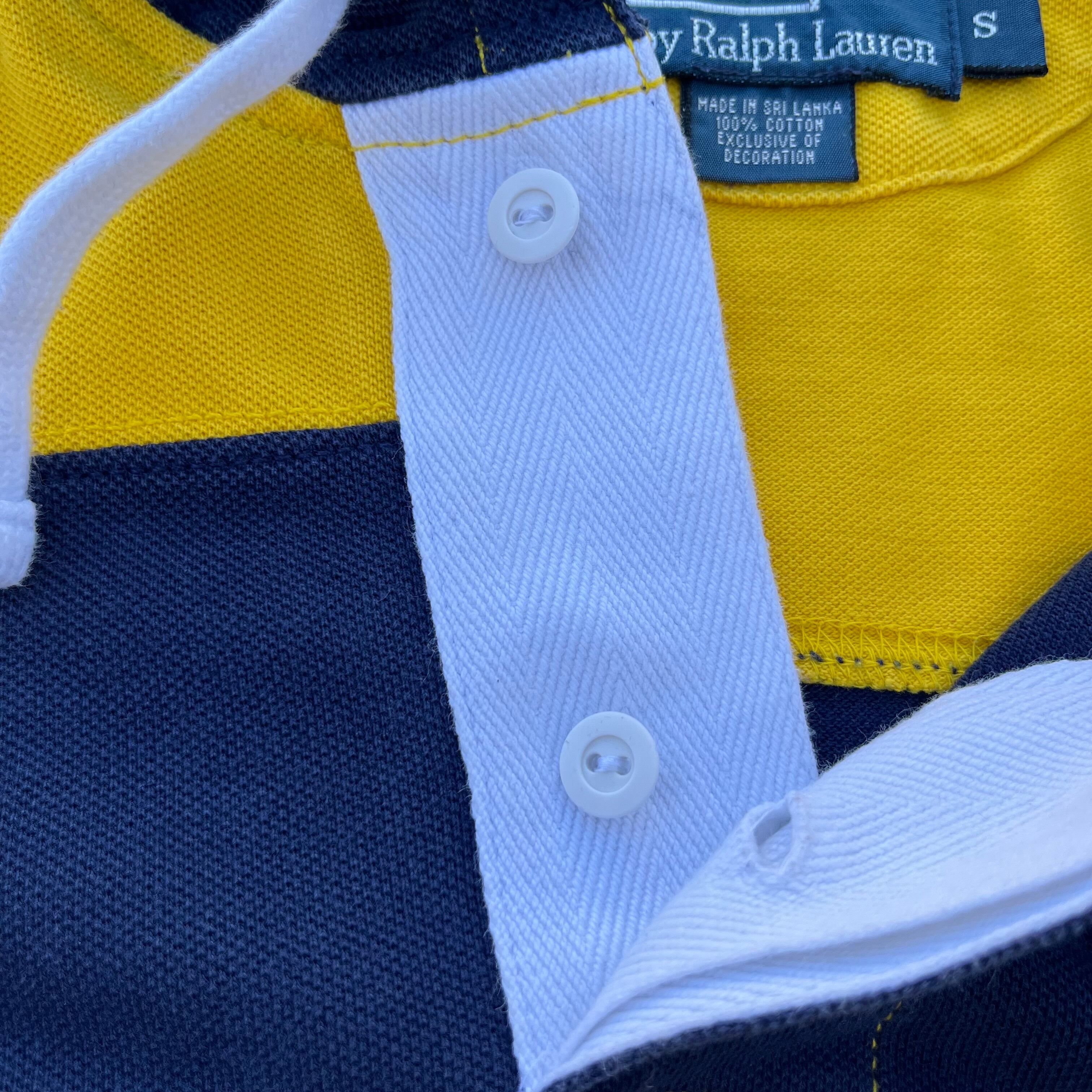 イエローとネイビーの太ボーダーが可愛い、90年代頃のポロのボーダートップスです。