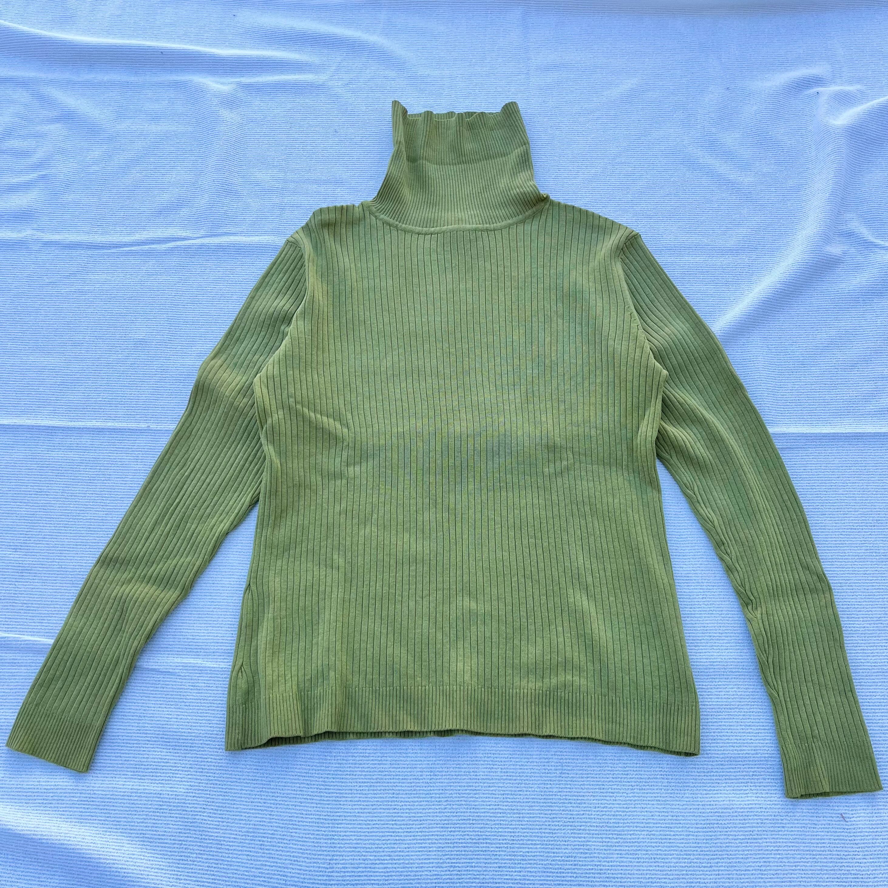 優しい黄緑色が可愛いCHICO‘Sのタートルネックトップスです。