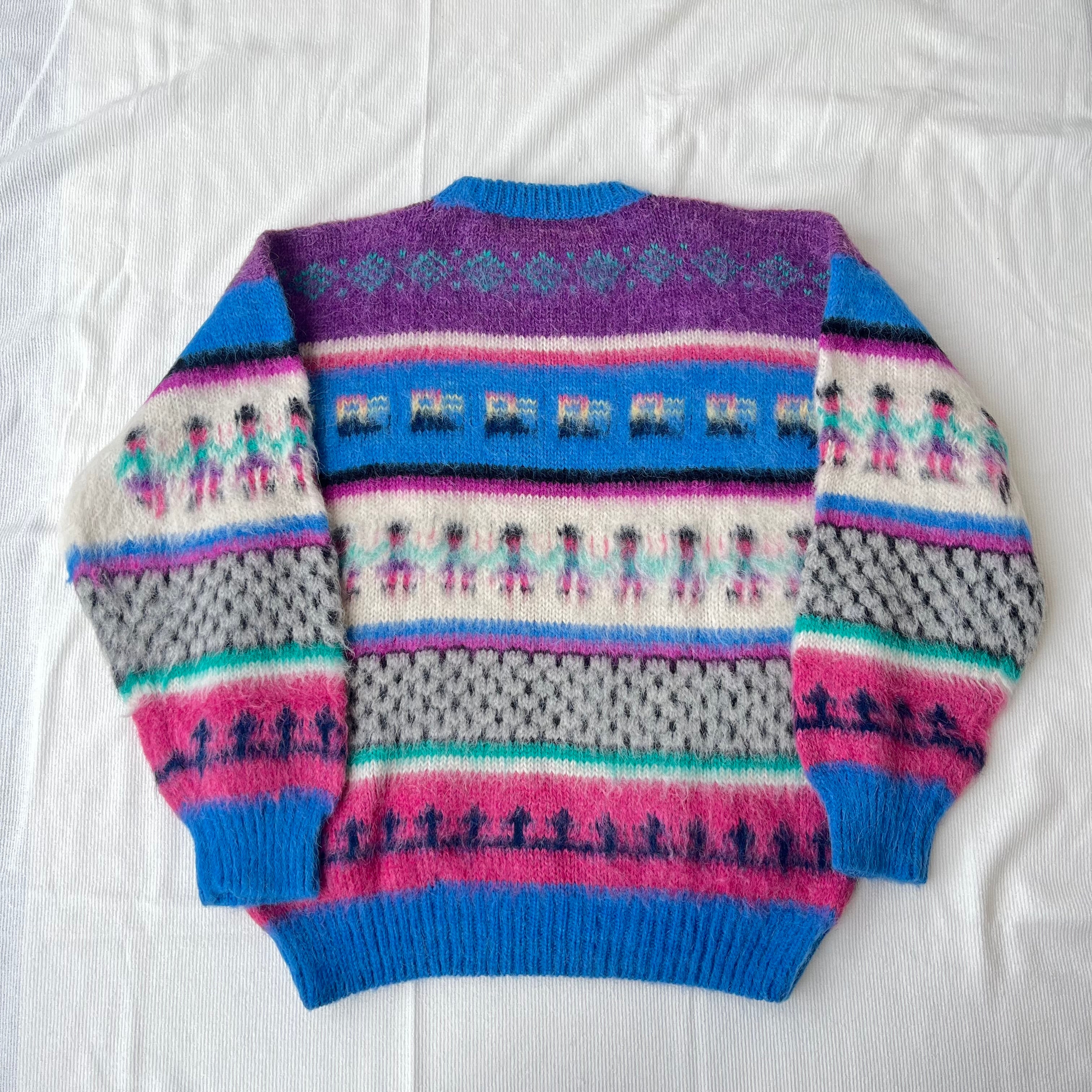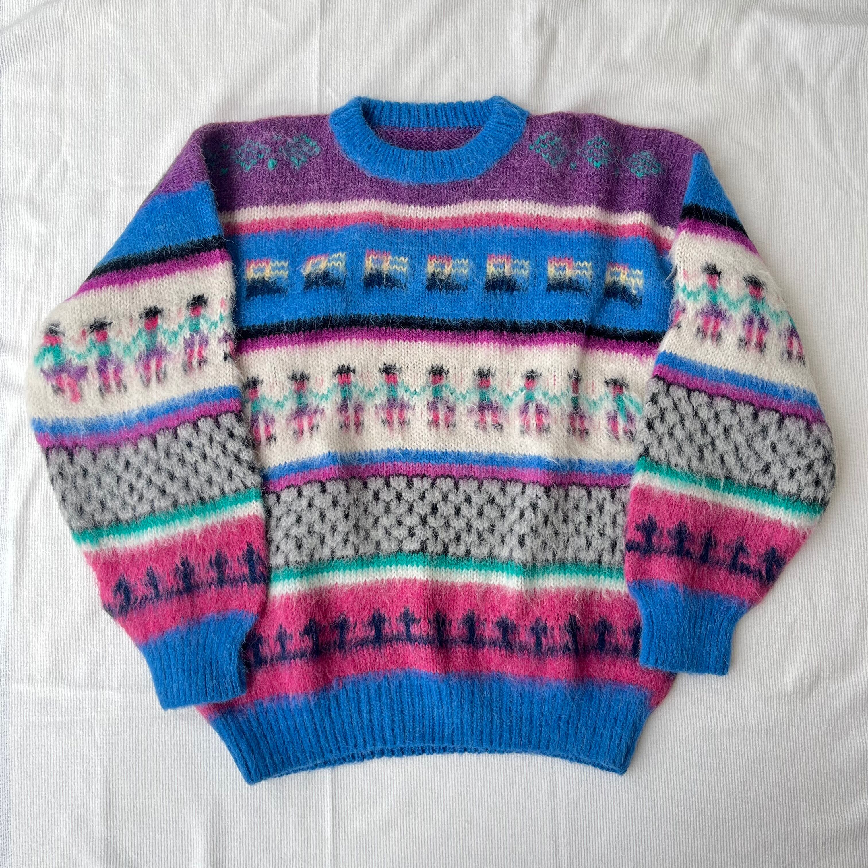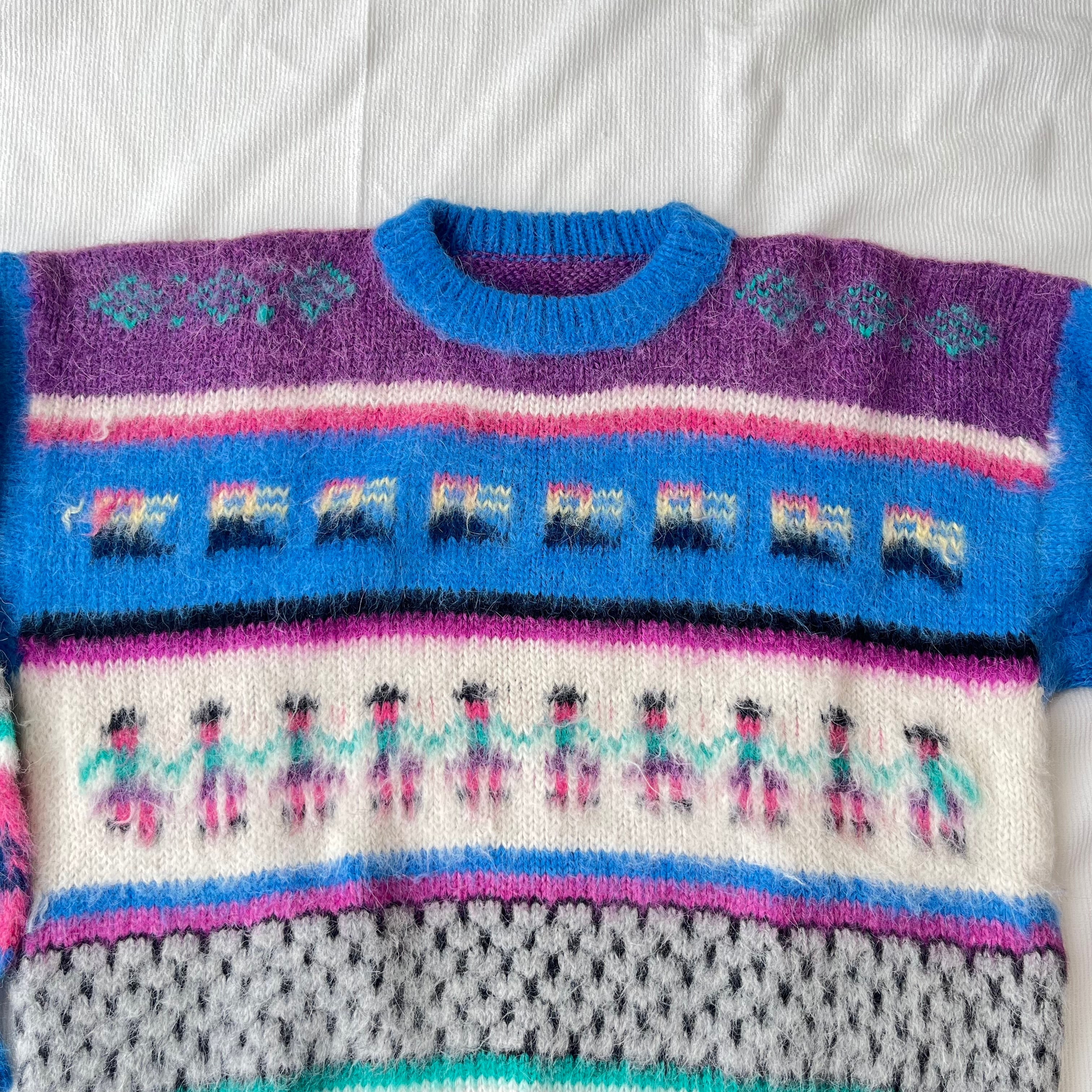 鳥や人物の模様、色味が可愛いニットセーターです。