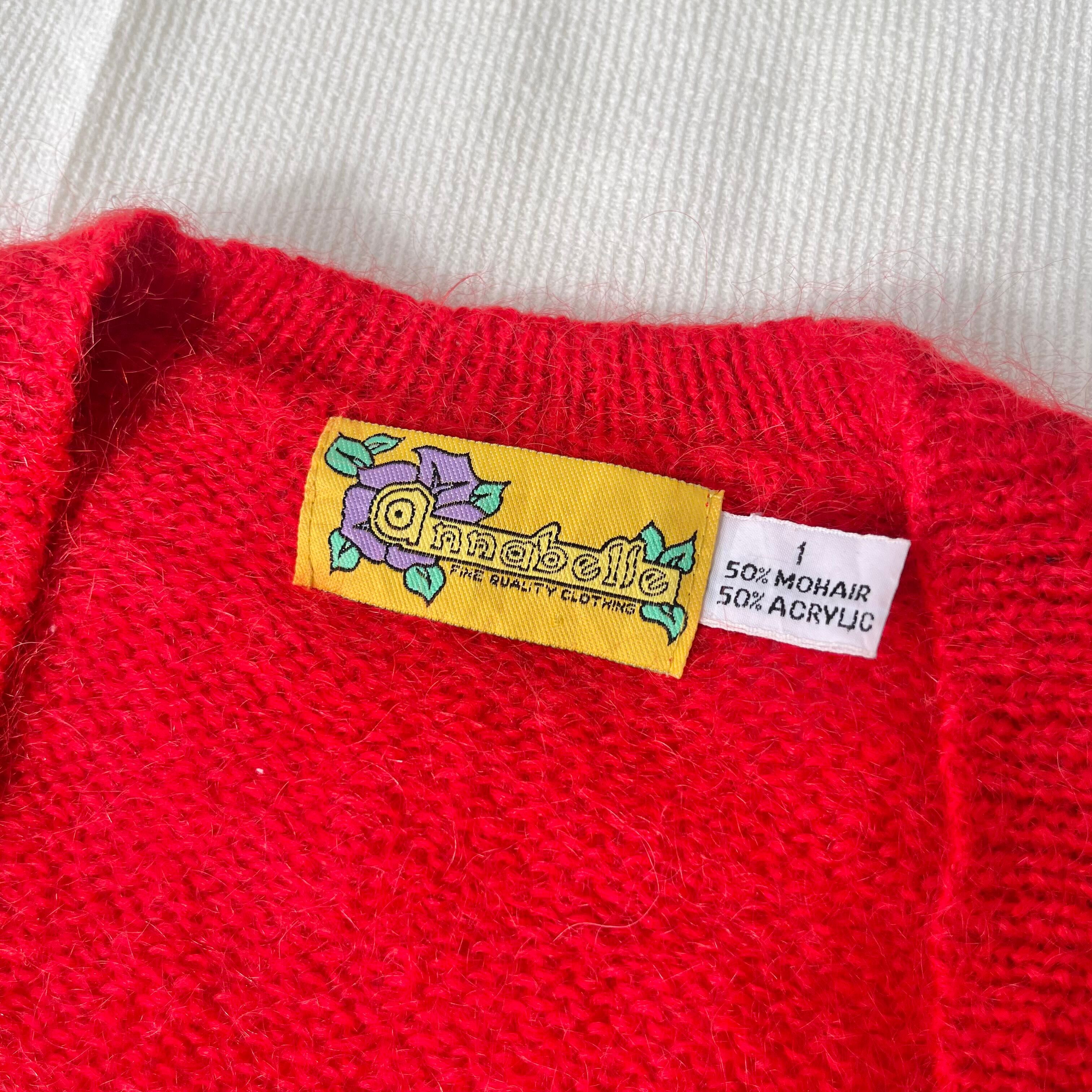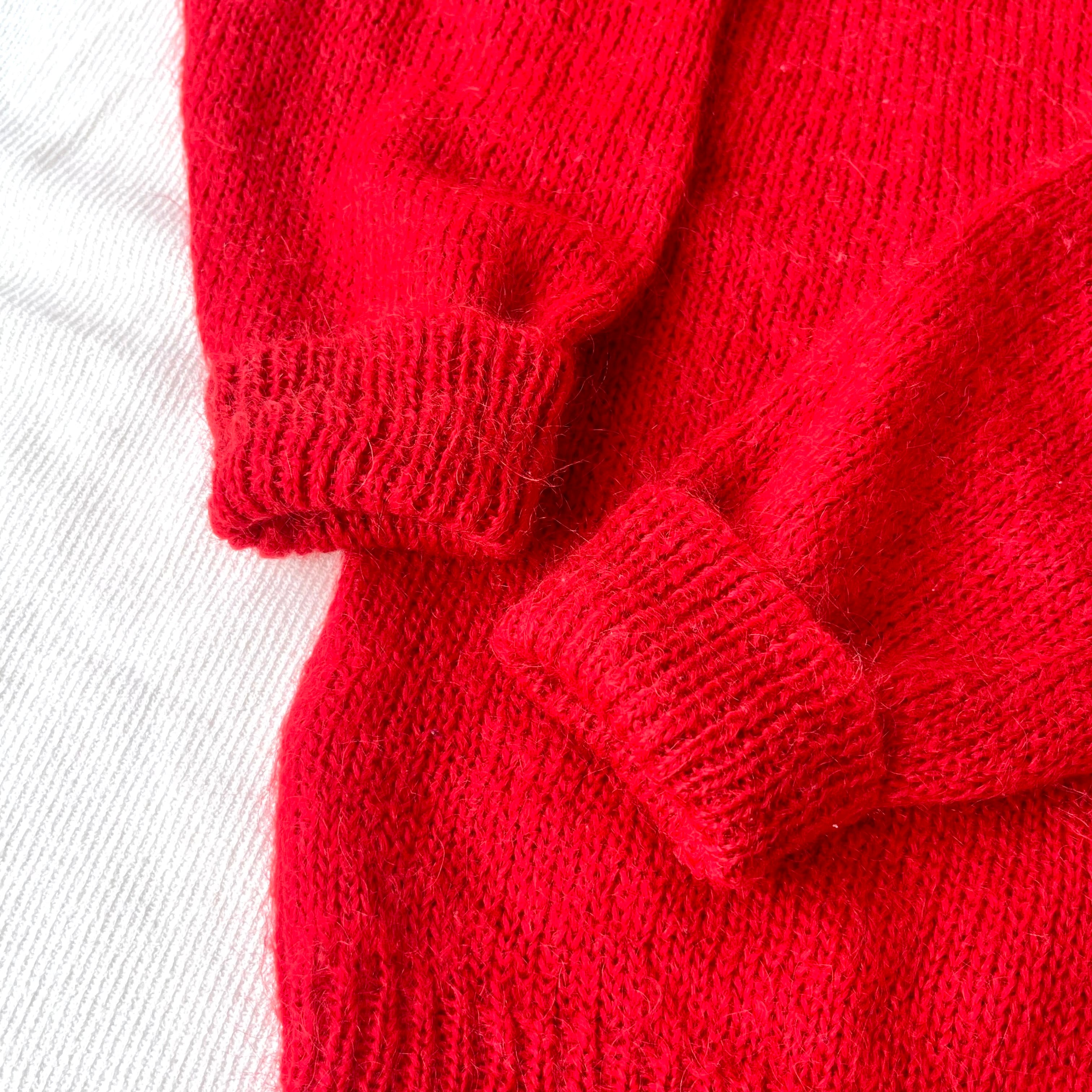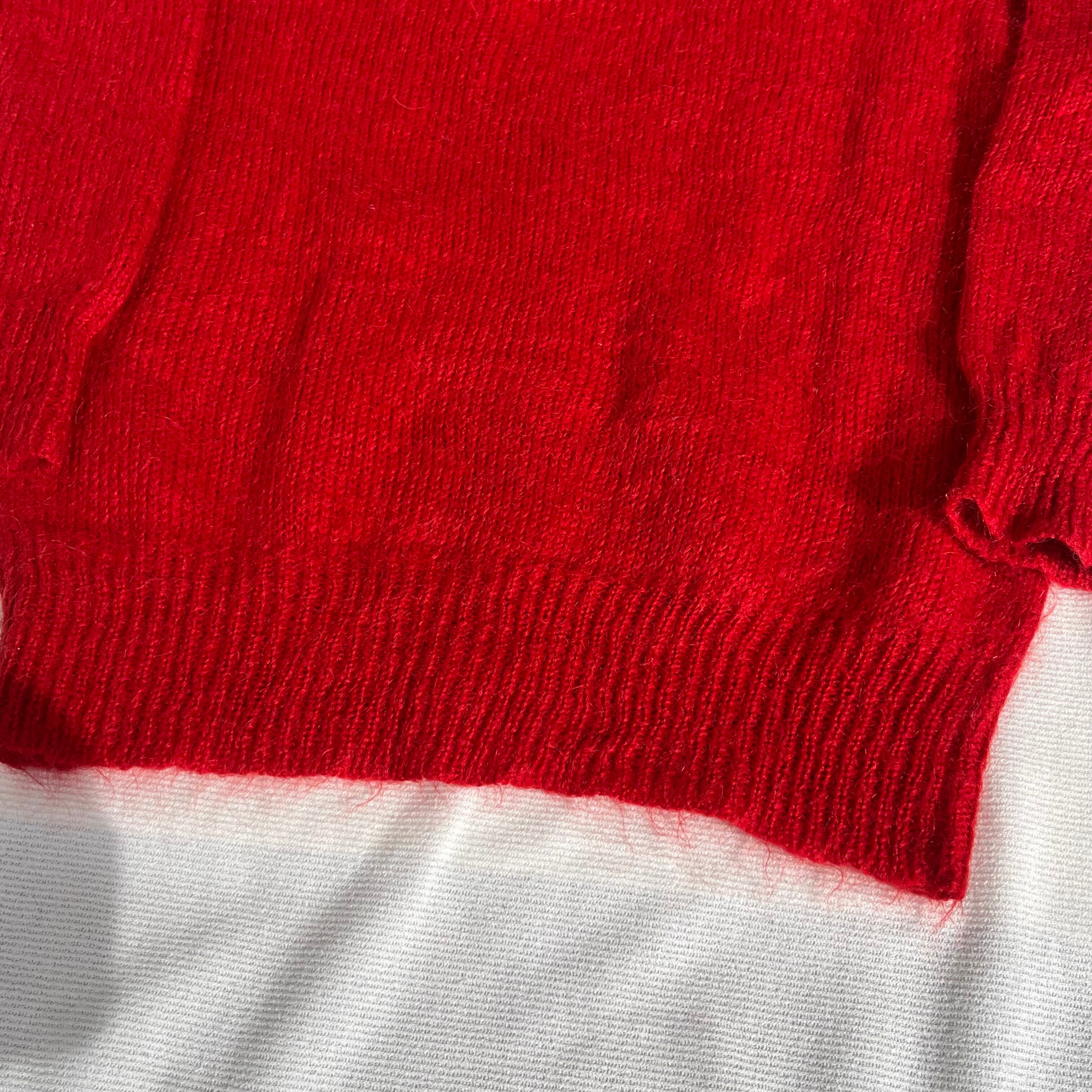 80s red mohair acrylic knit cardigan