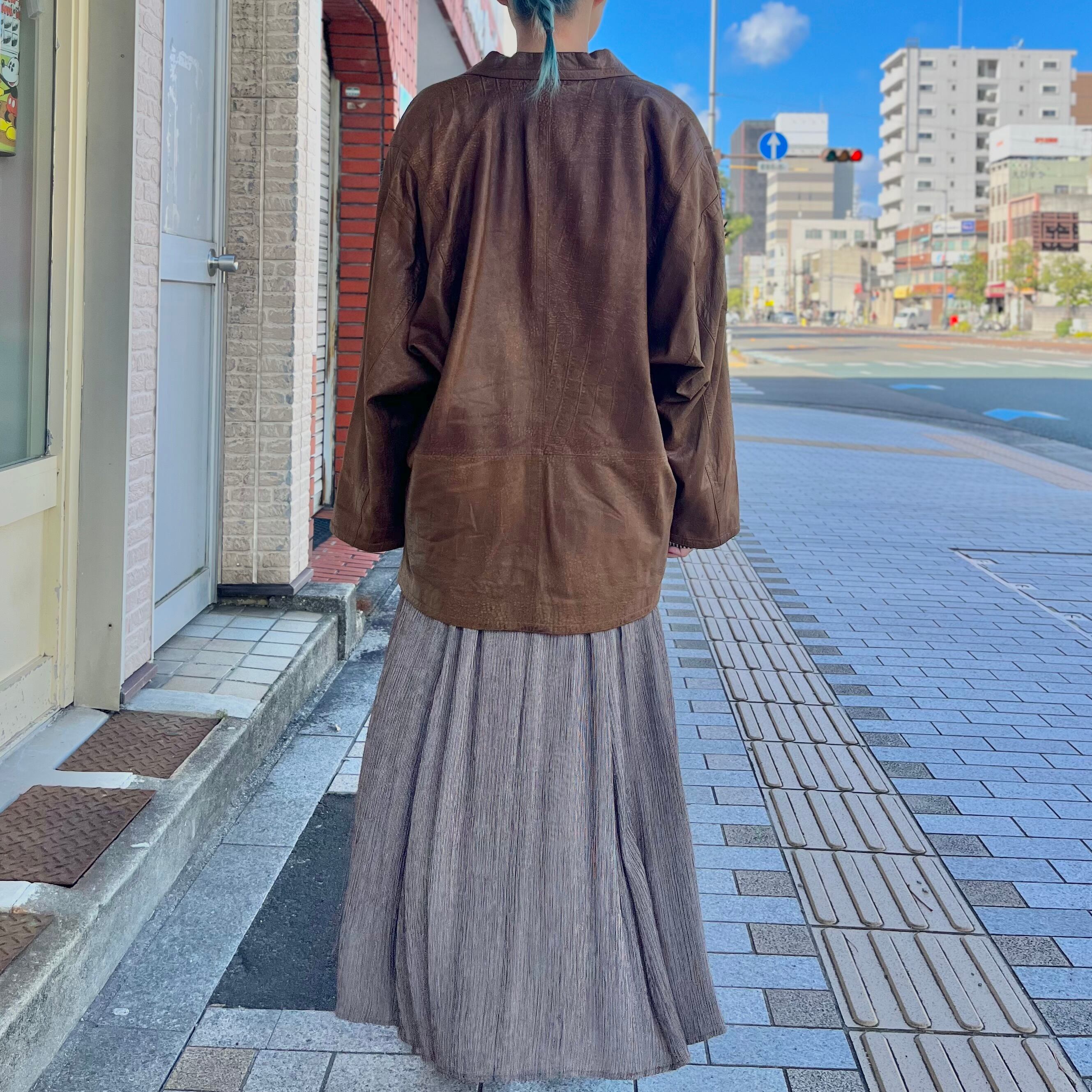 軽くて柔らかいレザーなので、シャツ感覚で羽織れる一着。
