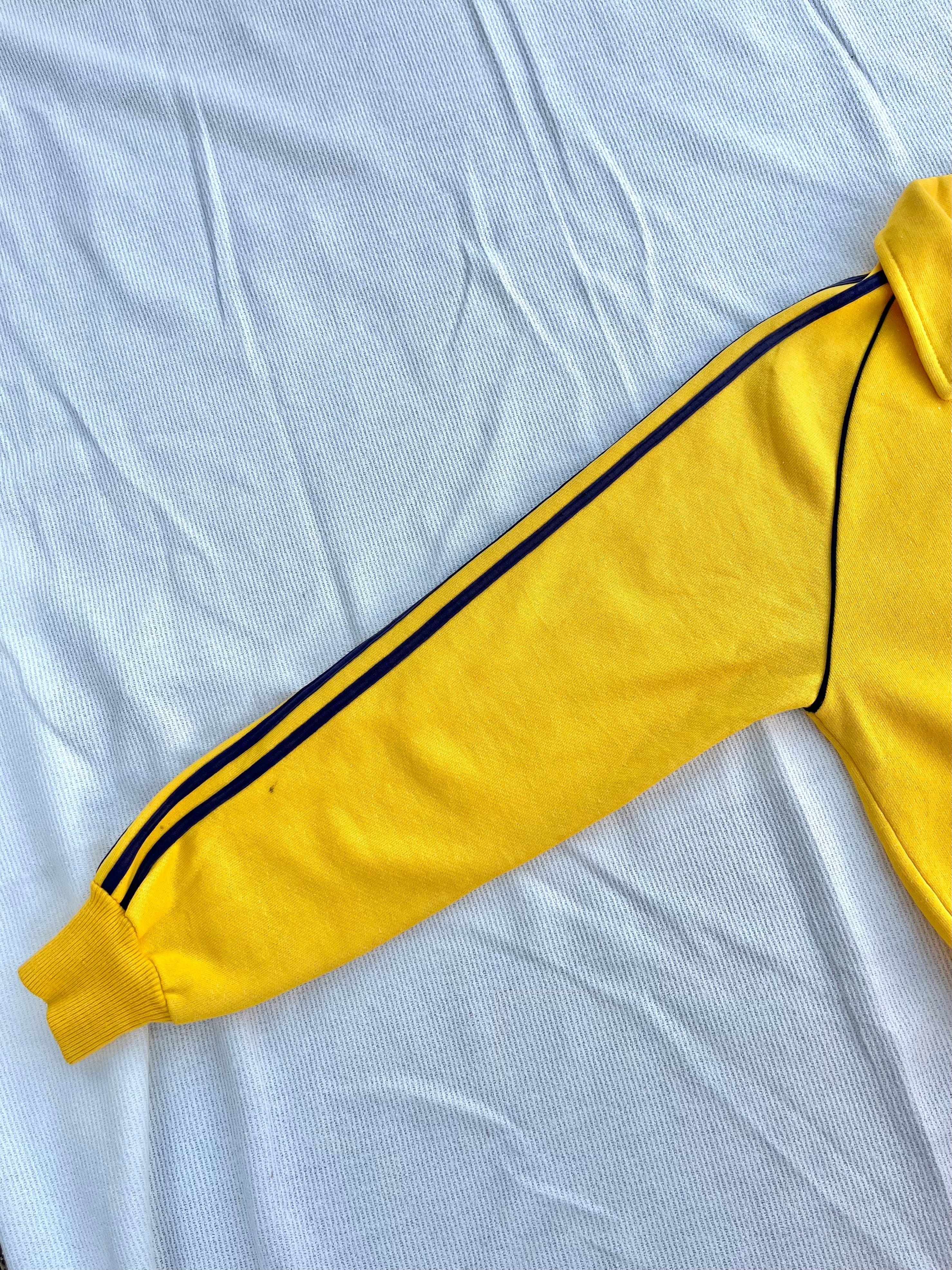 80年代頃のアディダスのトラックジャケットです!ラインはネイビー色になります。スウェット生地のトラックジャケットで珍しいかと思います。ジャストで着用できるコンパクトなサイズ感もかっこいいですね!裏起毛ではないので春先等の羽織りにも使え、上からアウターを着て差し色に使うのも素敵です。