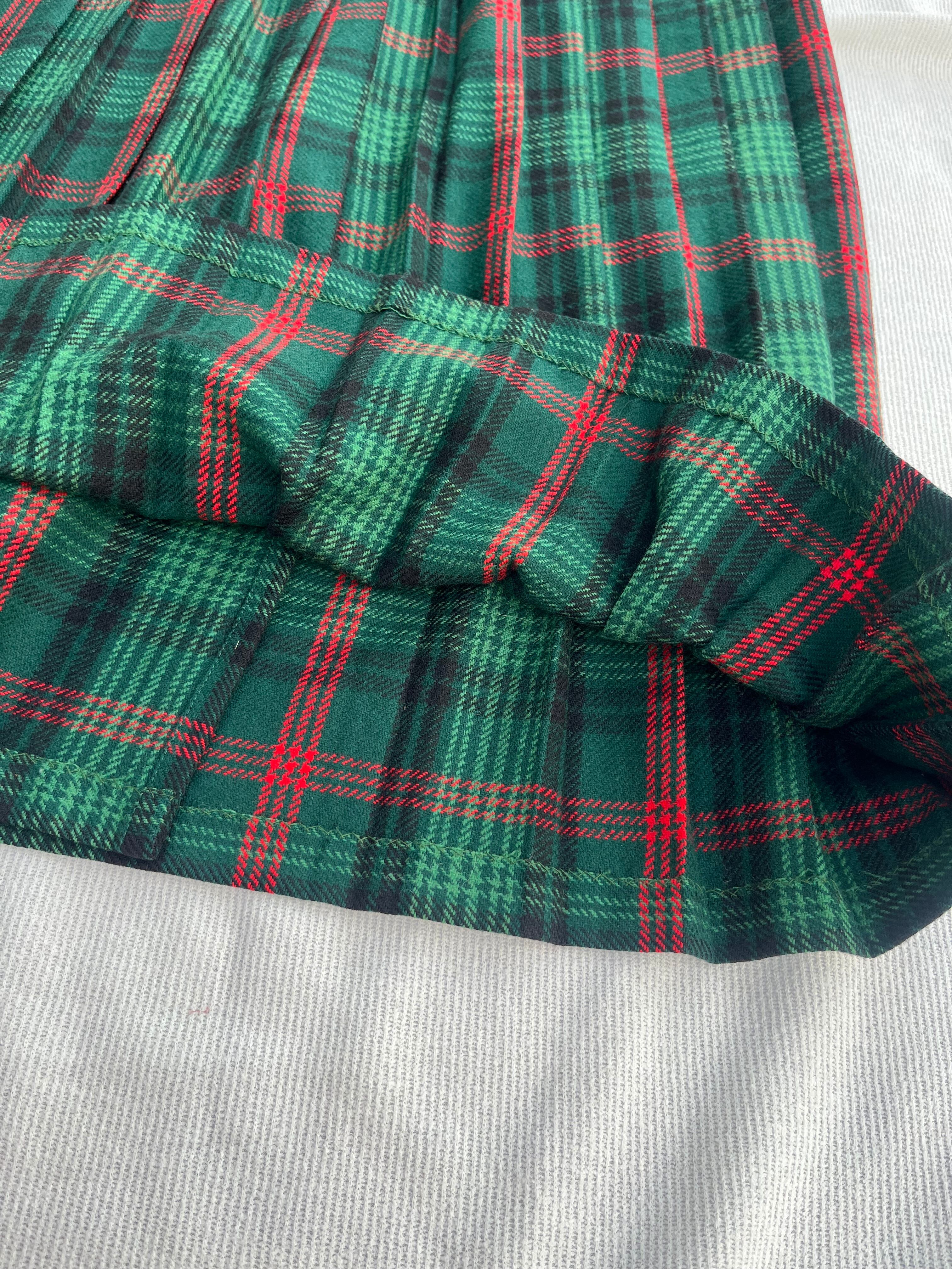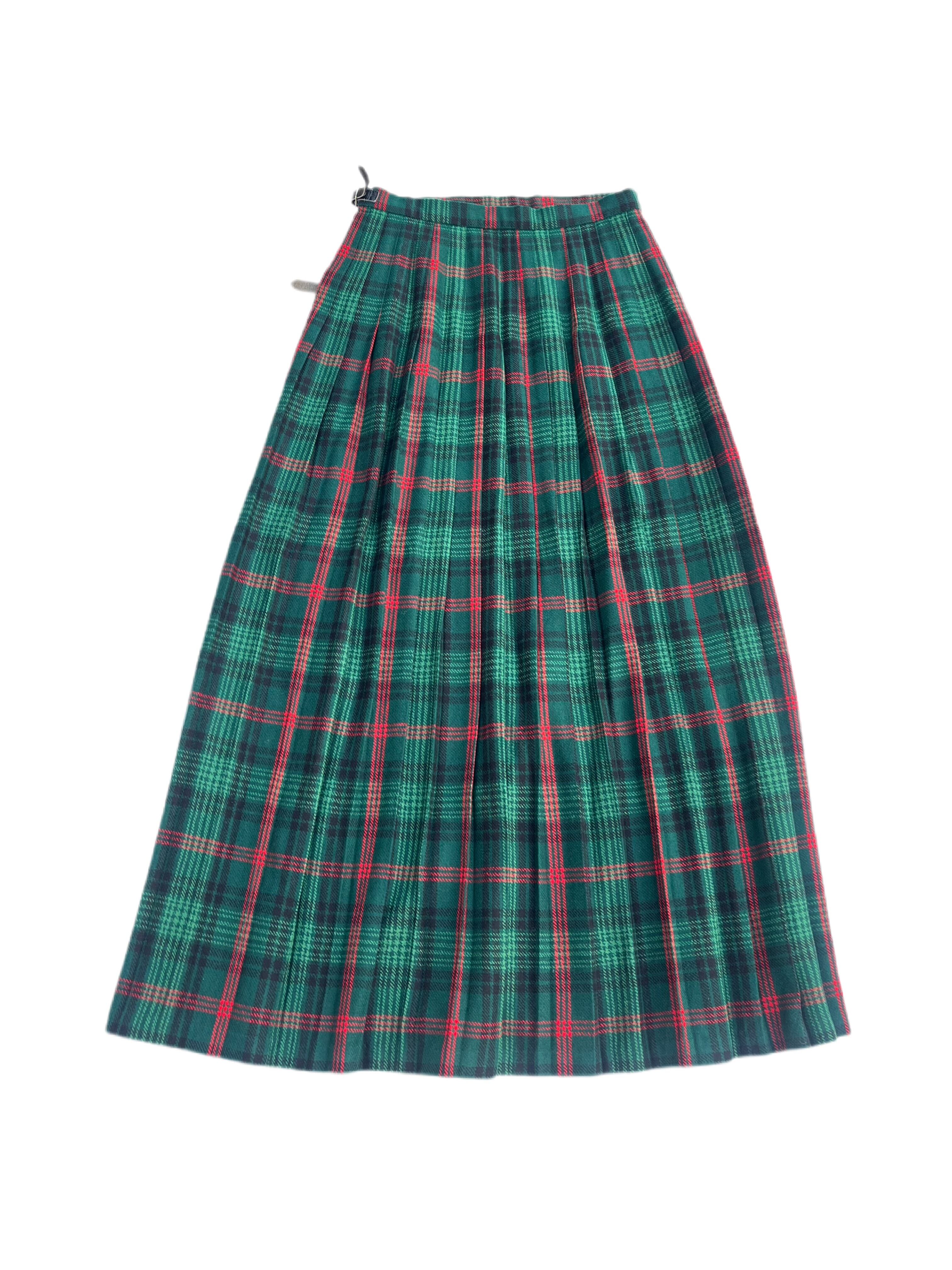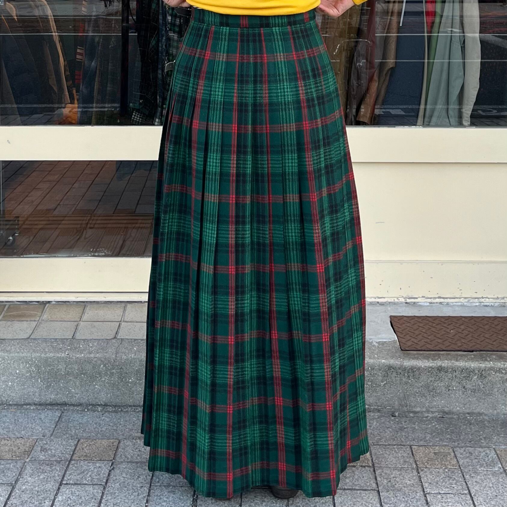 ロング丈が可愛いチェックウールスカートです。巻きスカートタイプでマジックテープとベルト金具が付いています。フリンジもアクセントで可愛いですね。160cmで足首くらいの長さでした。ロング丈で防寒もバッチリですね!形が綺麗なロングスカートなので、ゆるっとしたニットやスウェット合わせも可愛いです!着丈短めなアイテムやスニーカースタイルもおすすめですよ♡