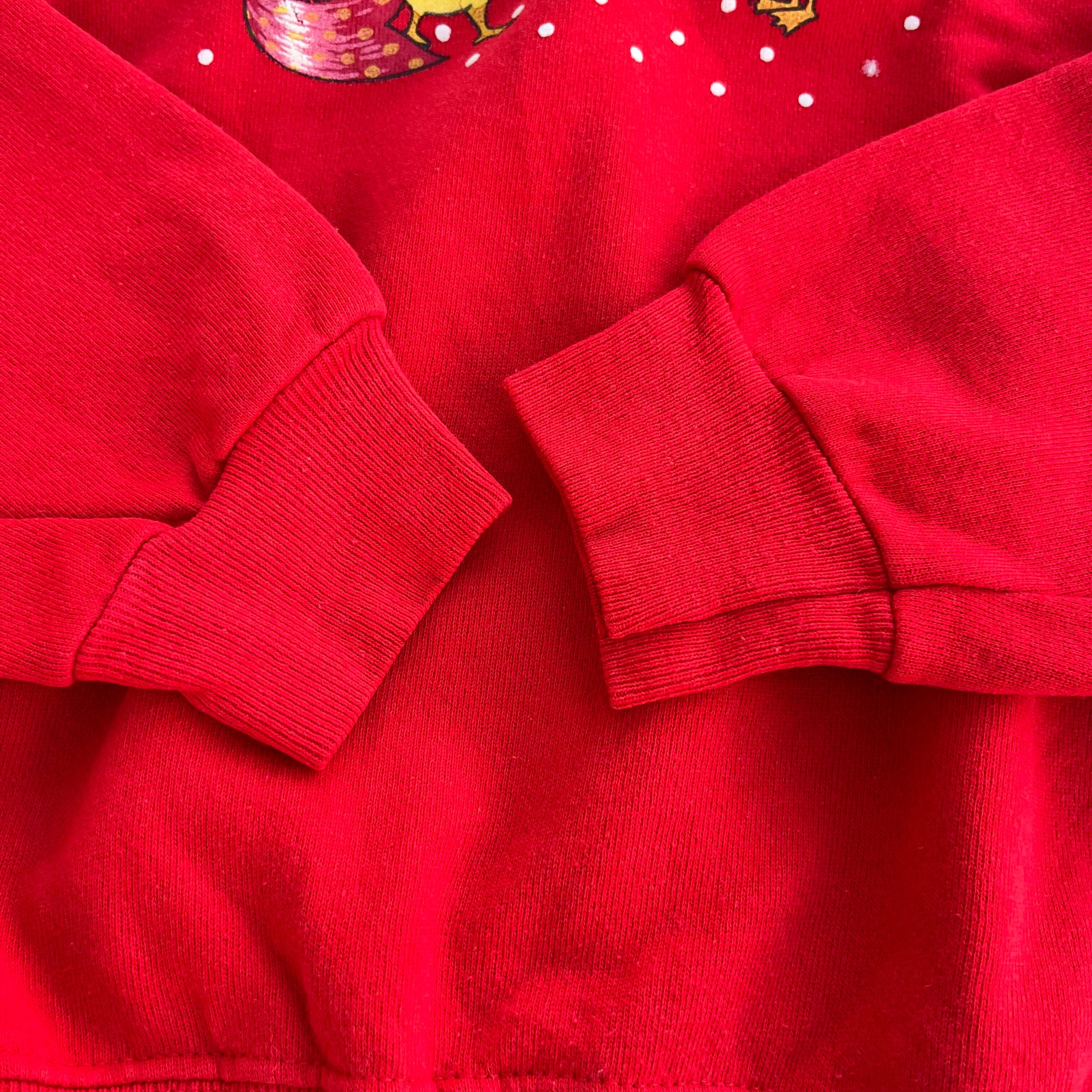 アヒルの親子が可愛いプリントスウェットです。袖にもアヒルがいたりほっこりしますね。ゆるっとしたサイズ感なのでいろんなスタイルにお使いいただけますよ。