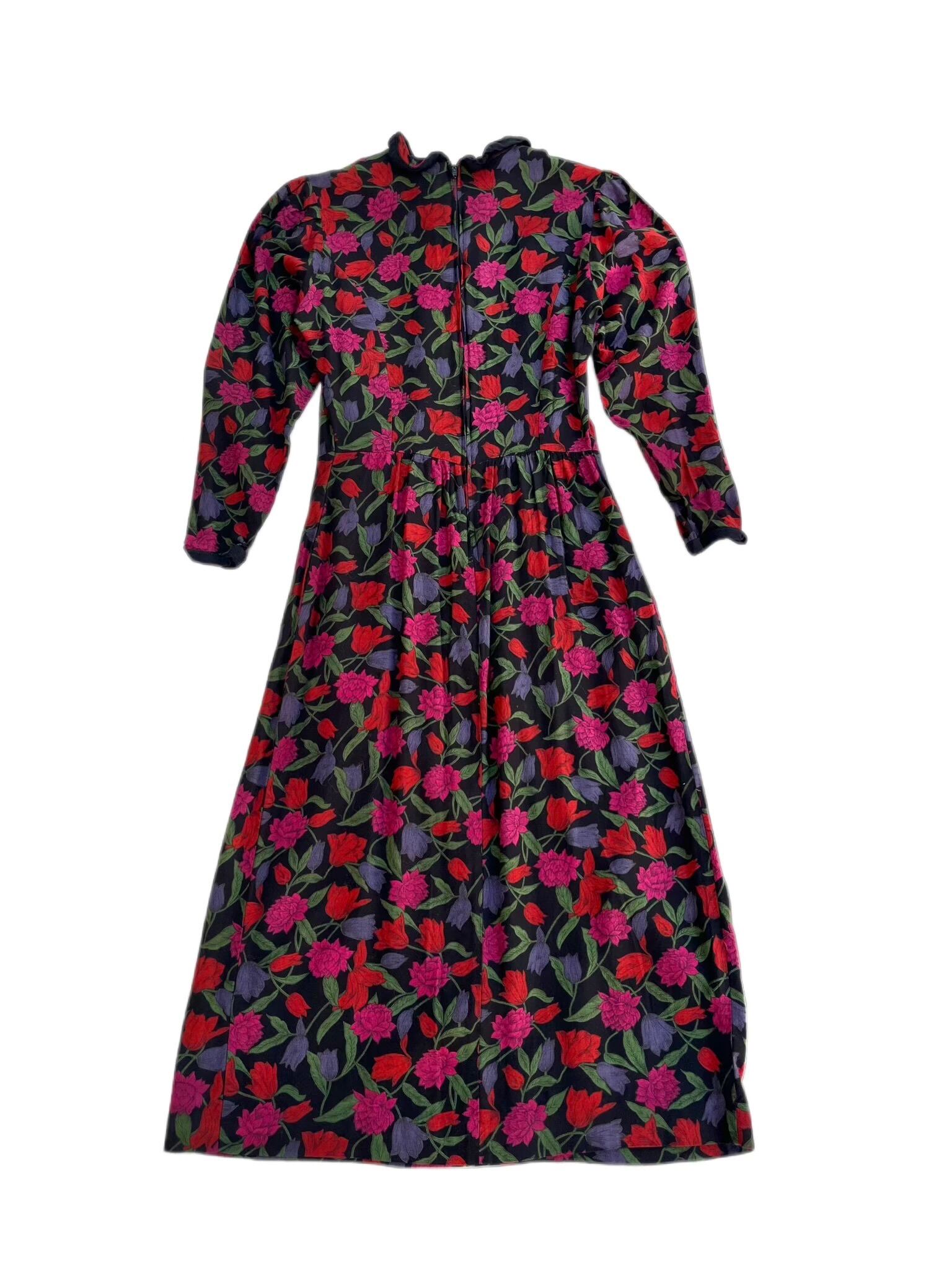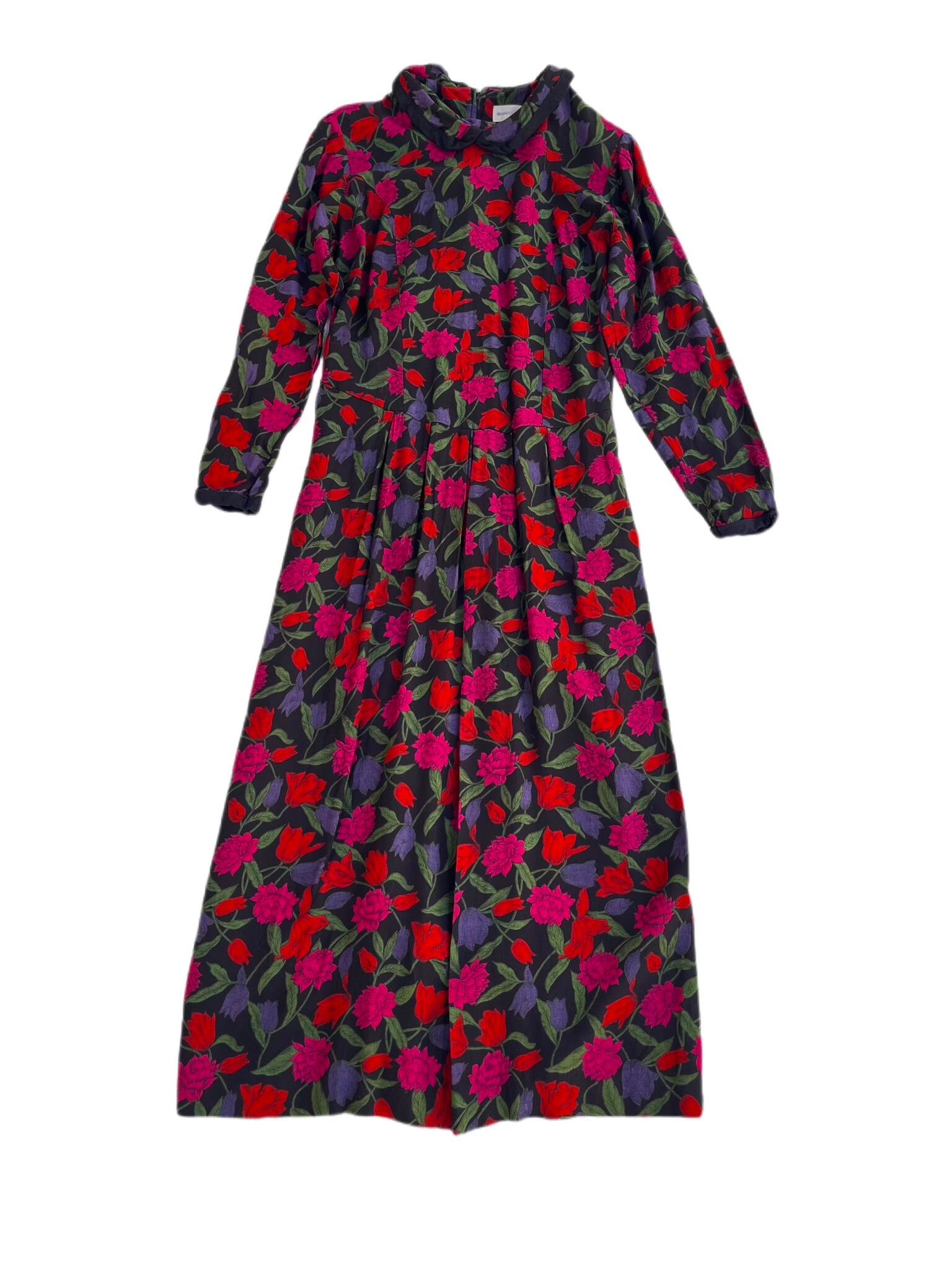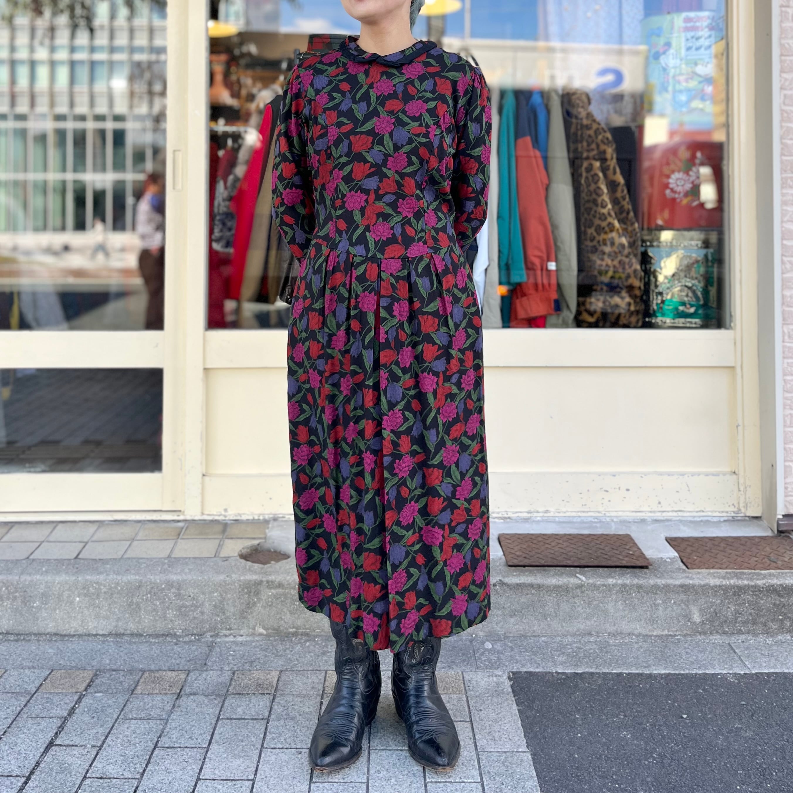 80s〜black flower printed dress 花柄ワンピース ヴィンテージワンピース