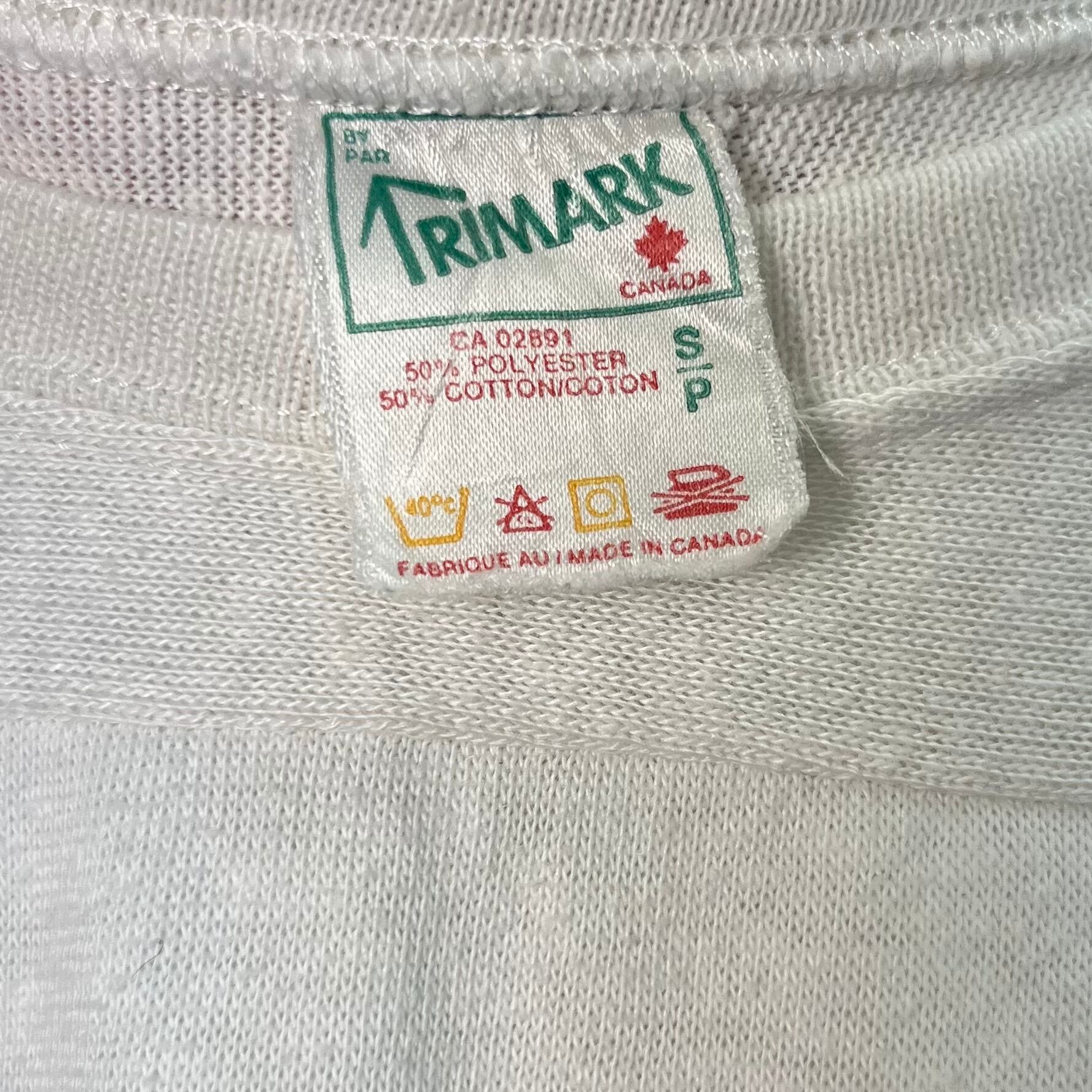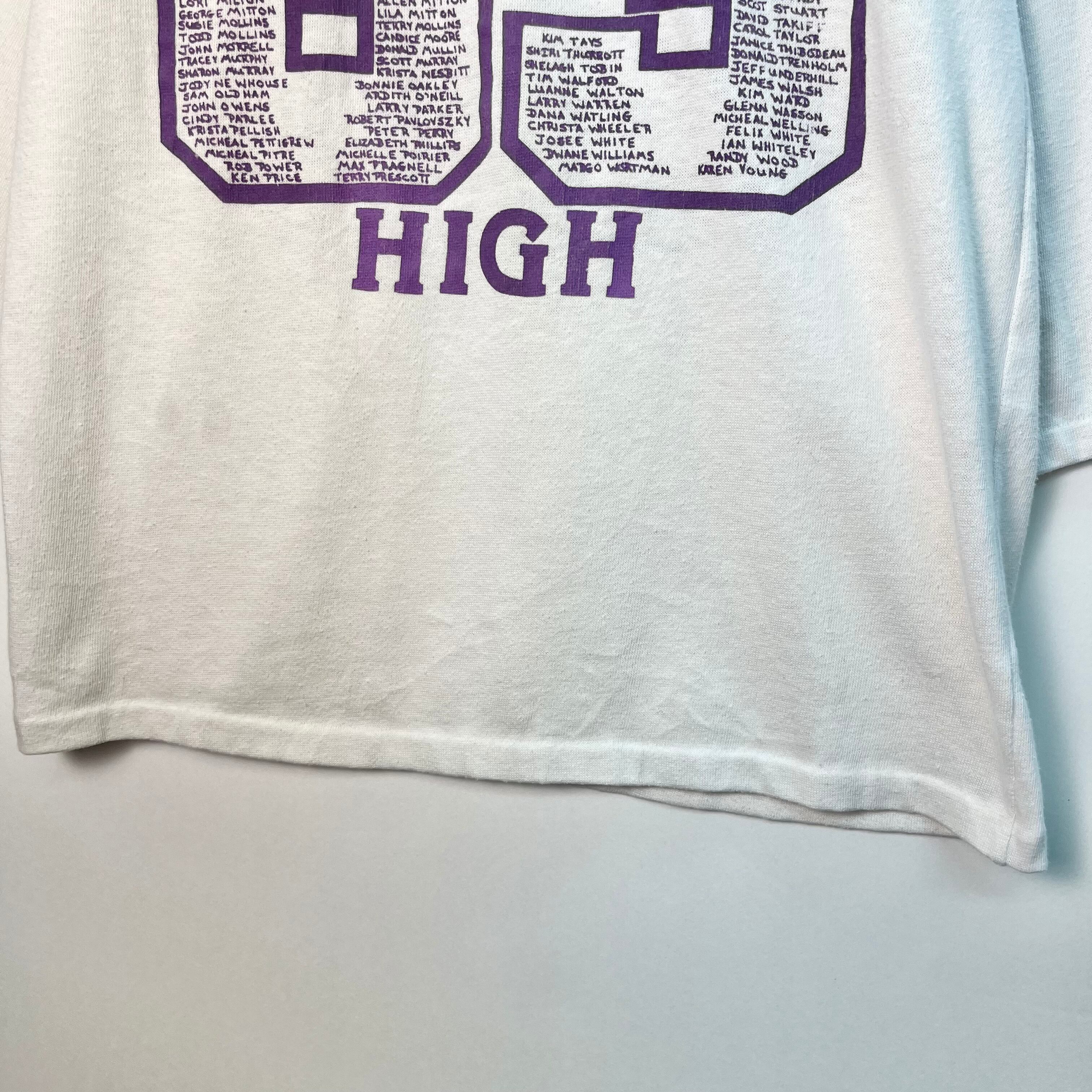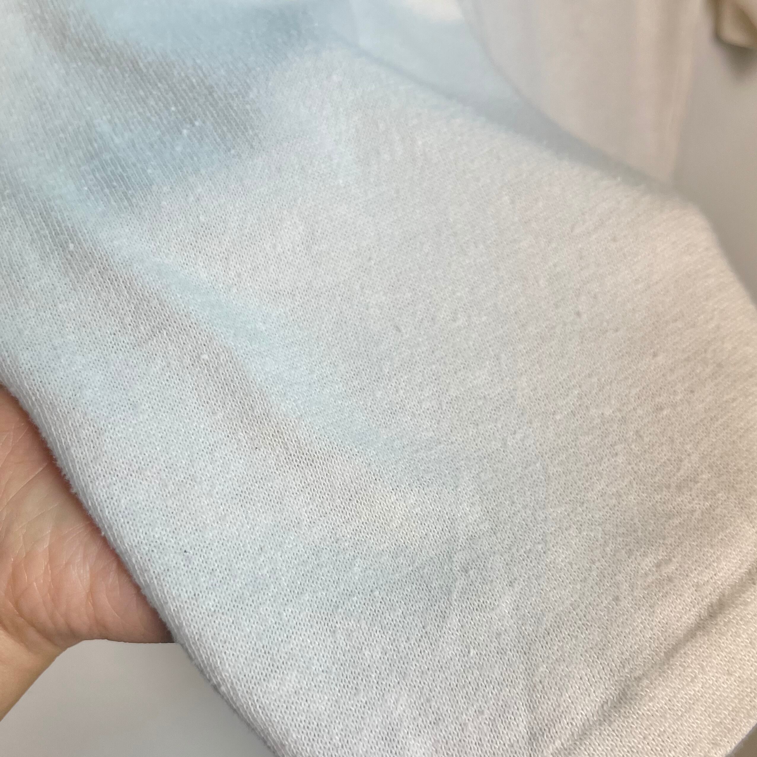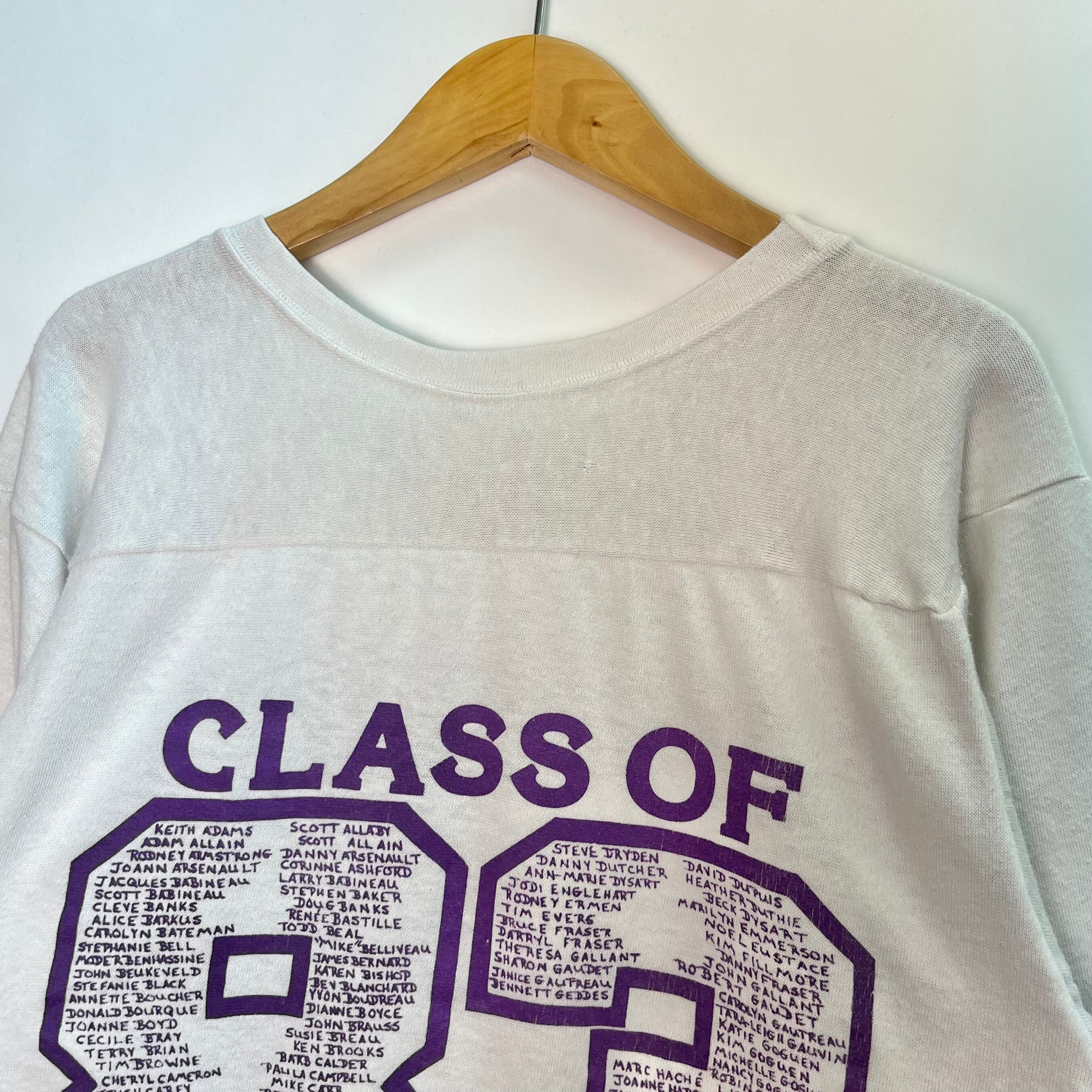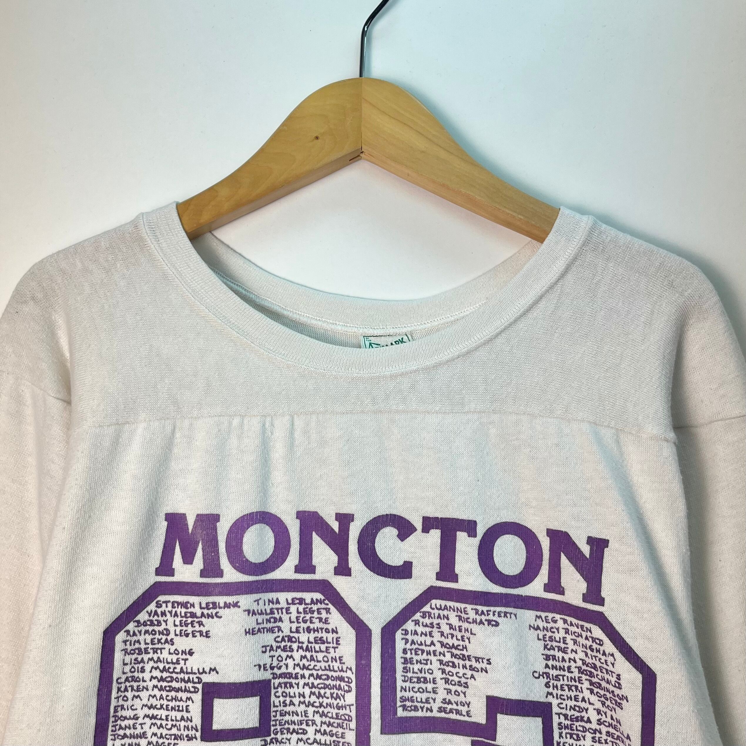 ホワイトにパープルの配色が可愛い80年代ごろのフットボールTシャツです!質感はフットボールTのしっかり感と柔らかさもあります。メンズライクにしたい時にプラスしたり、ワンピースのインナーにも使えます⭐︎