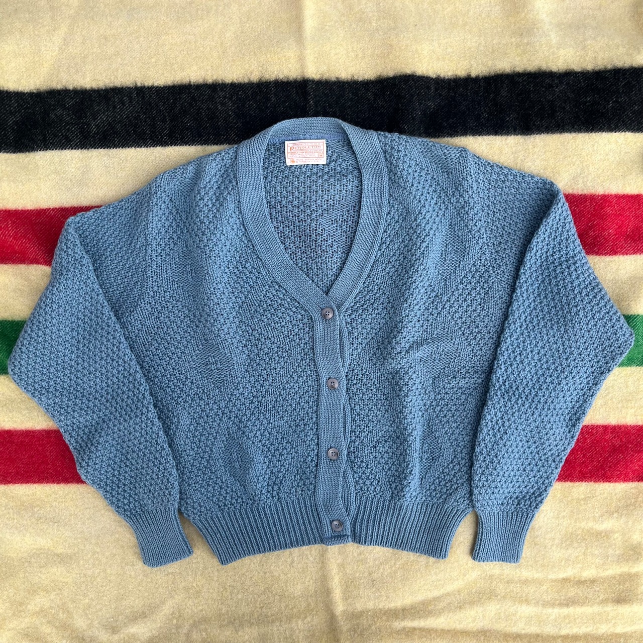 70年代ごろのペンドルトンのウールカーディガンです。落ち着いた綺麗なブルー色で、春先まで着用いただける素材感です!前と後ろにひし形の柄で編まれているのも素敵ですね。ウールの重さやチクチク感も感じにくいです。デニムと合わせてさらっと羽織りに使用したり、日常使いにも合わせやすいです☆
